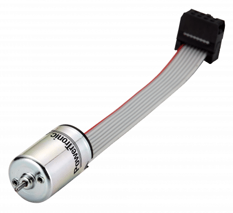 Bild edes kleinen Elektromotors BL36.40H, aus dem mehrere Kabel ausgehen.